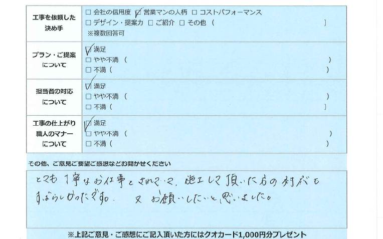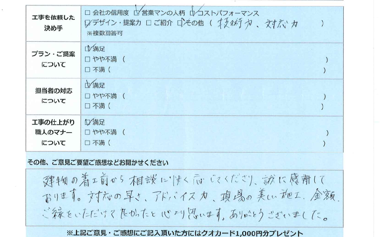 お客様の感じた事、感謝頂いたお気持ち、不満も社内で共有し